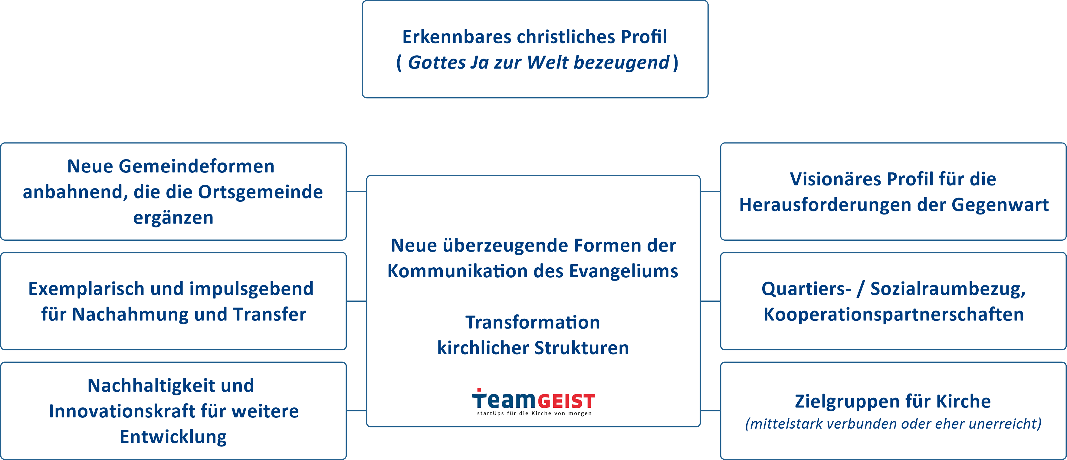 Für die Zeit von 6 Jahren wurde ein Fonds von 3 Mio. € zur Förderung von „StartUps für die Kirche von morgen“ aufgelegt. Folgende Förderkriterien wurden seinerzeit von der Kirchleitung der EKvW verabschiedet: